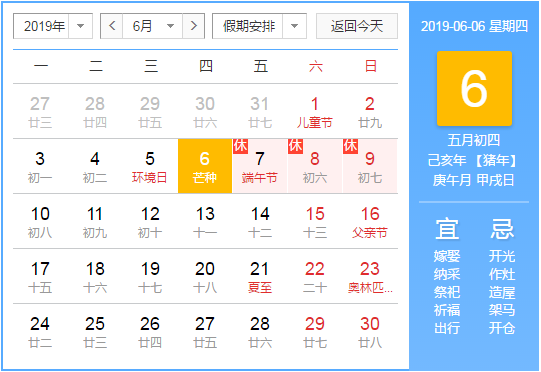 根據(jù)《國(guó)務(wù)院辦公廳關(guān)于2019年節(jié)假日安排的通知》,結(jié)合公司實(shí)際情況,2019年端午節(jié)假期安排如下: