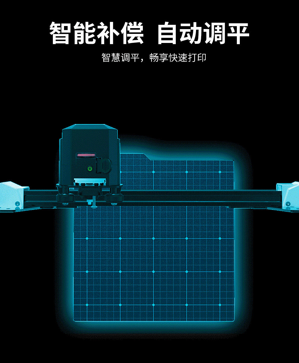 為了讓用戶擁有良好的用機(jī)體驗(yàn),即刻享受3D打印帶來(lái)的樂(lè)趣,R1搭載了全新的非接觸式智能補(bǔ)償調(diào)平系統(tǒng),25點(diǎn)快速調(diào)平。
