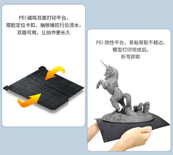 PEI磁吸雙面打印平臺(tái),不僅雙面可用,在打印過(guò)程中更是易粘易取不翹邊,內(nèi)置的收納盒設(shè)計(jì),不丟失每一個(gè)小細(xì)節(jié)。