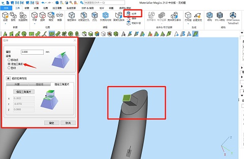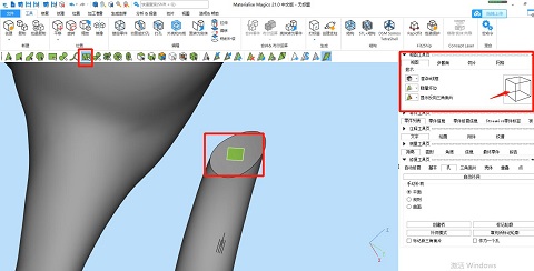 ⑤設(shè)計(jì)插銷,選擇“框選標(biāo)記并重畫網(wǎng)格”功能,選擇一個(gè)模型的接觸面并框選出插銷大小和形狀??梢越柚晥D工具頁(yè)來(lái)精準(zhǔn)調(diào)節(jié)視圖方向。