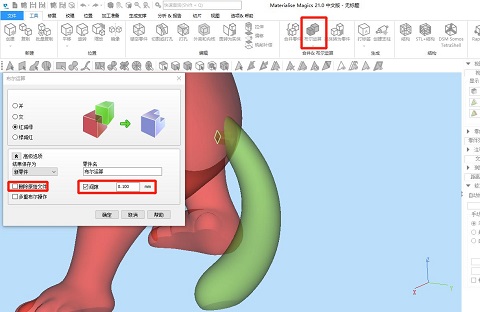 ③再通過“分離標(biāo)記”功能將標(biāo)記部位分離,這樣我們將得到2個(gè)帶有接口破面的模型,選中其中一個(gè)模型,移動(dòng)指定距離遠(yuǎn)方便后續(xù)操作。