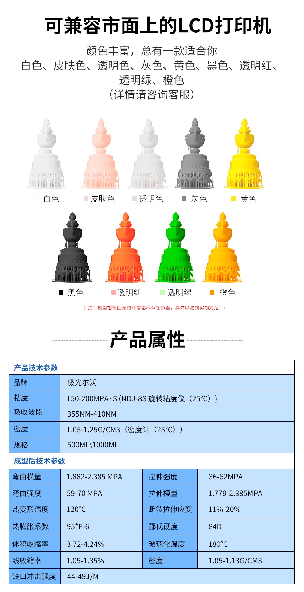 通用剛性樹脂耗材,高精細(xì)度表面光滑細(xì)膩,收縮率低、高韌性,誤差更小,高硬度、耐高溫,固化速度更快更穩(wěn)定,兼容市面上的LCD 3D打印機(jī)